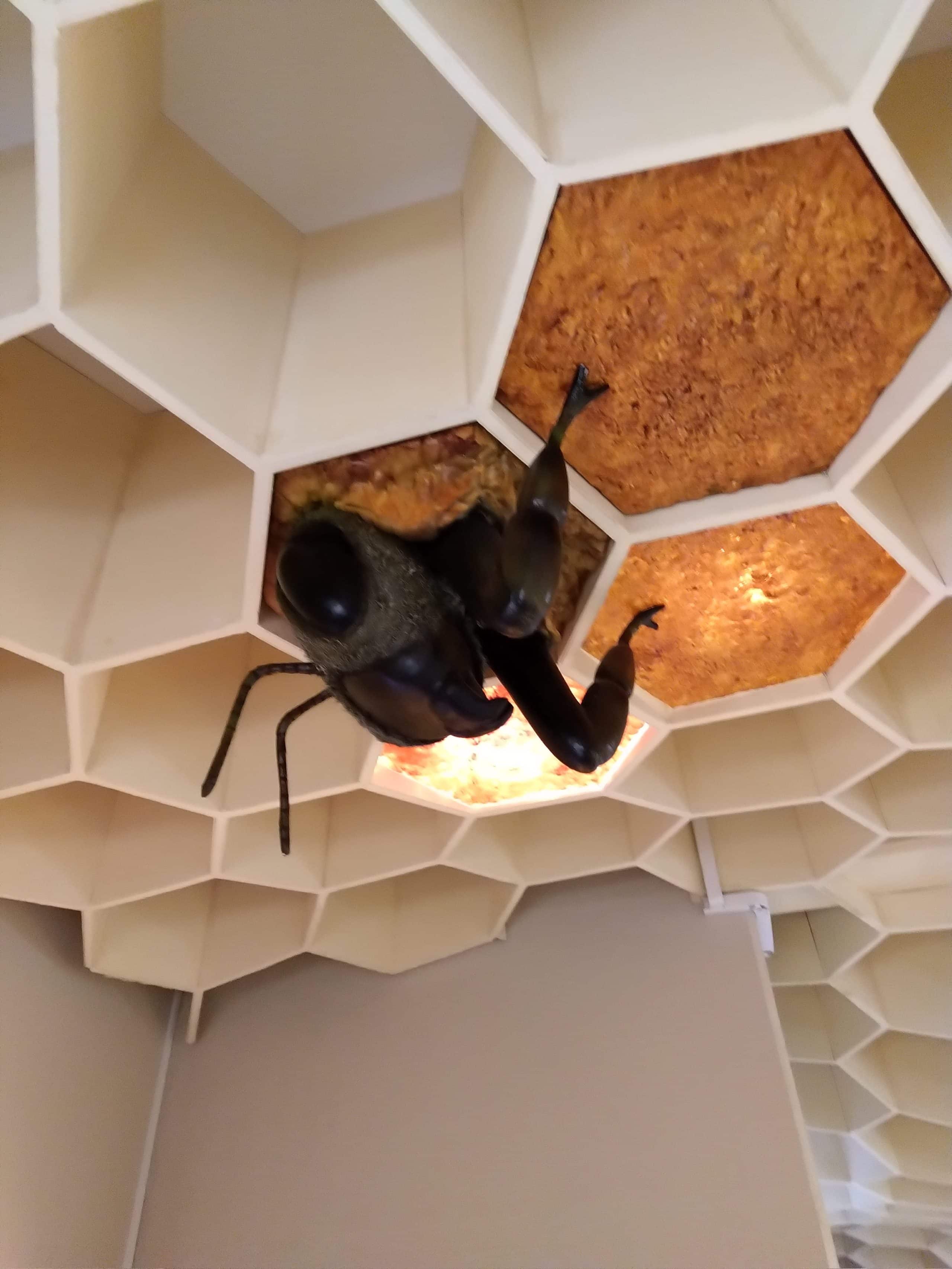 And it is not only about understanding, but also about attraction. There are online games for children, the ceiling is like a huge honeycomb with 2 bees coming out of its cells, there are real glass hives with bee colonies inside them, so we can see the honey bees as closer as it can possibly be done, in safe conditions. Here are some pictures: