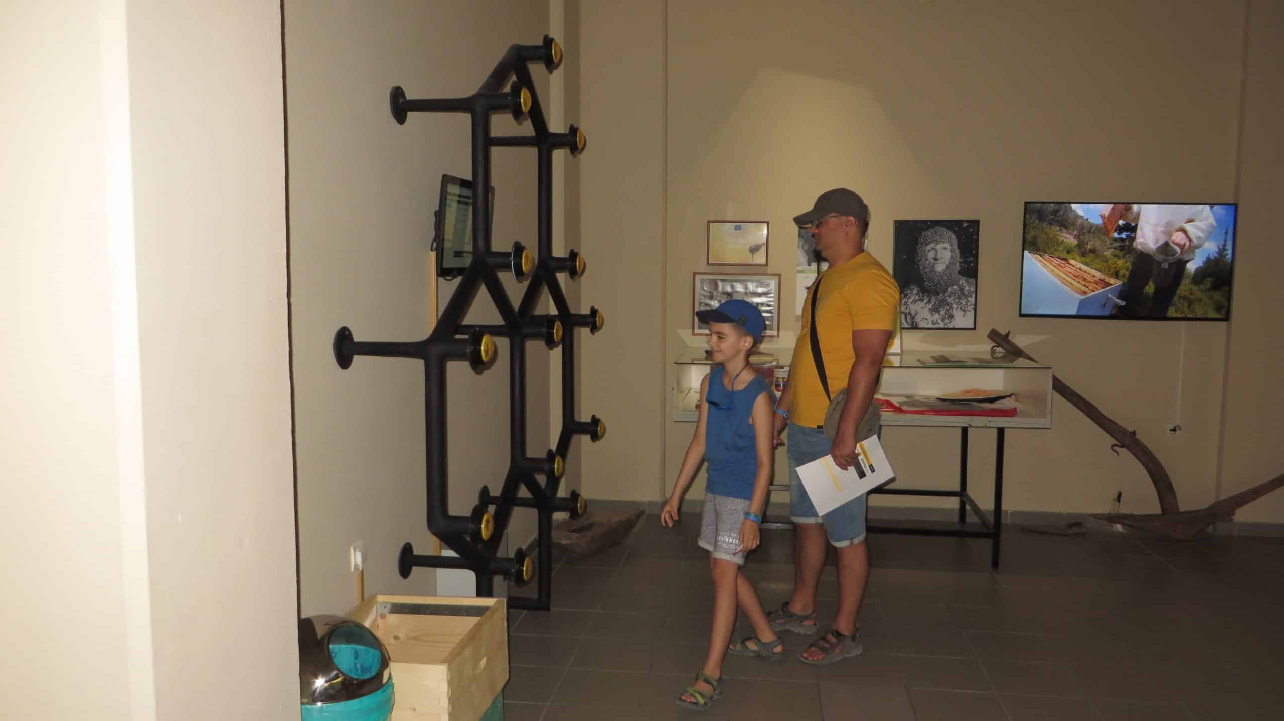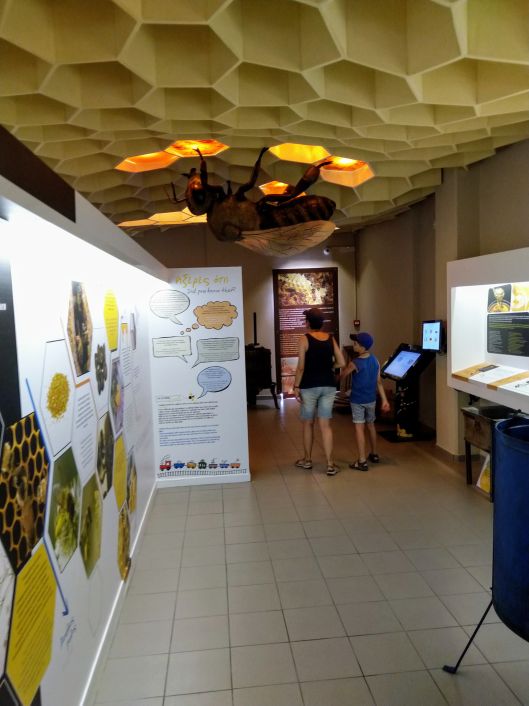 The place is new, it has a covered parking area – which is important in Rhodes’ torrid sun – it’s small and cozy. It starts with a bit of history, how can they not, as beekeeping is as old as Greece, and presents short stories about all the processes needed to make honey. How a beekeeper’s suit looks like, how were the hives in the beginning and so on. It is somehow structured like a school lesson for kids and this way everybody can understand.